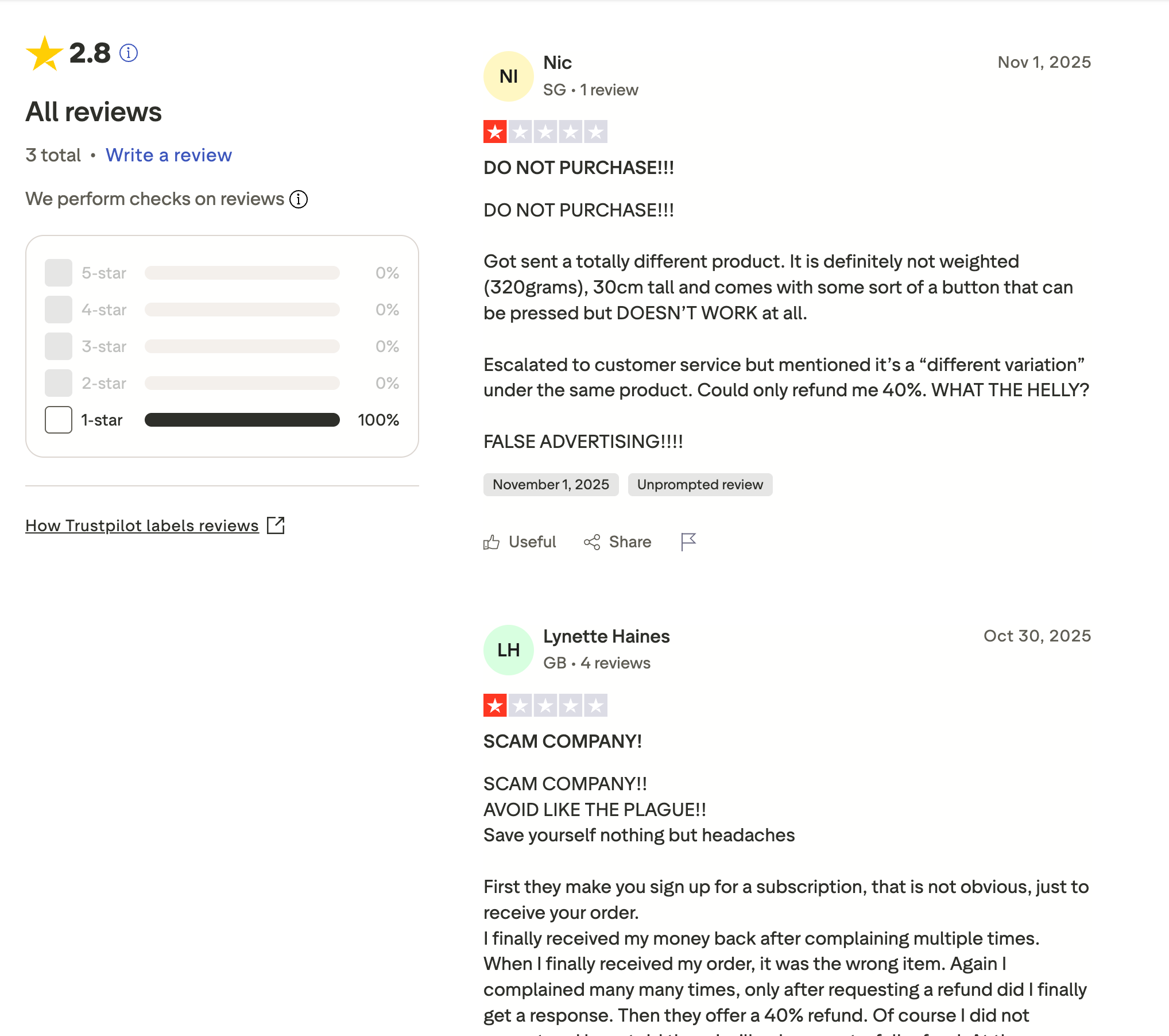 Do NOT buy from an ad that you see on Facebook, Instagram, or TikTok. Most (but not all) are scams.