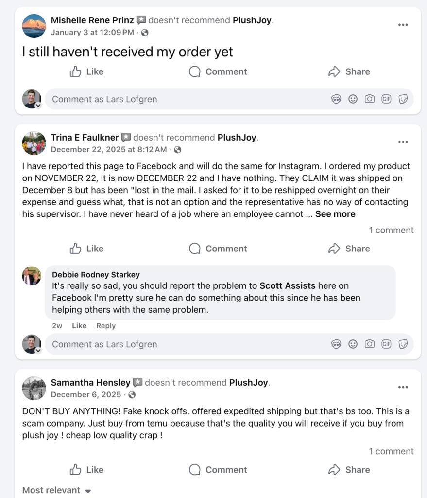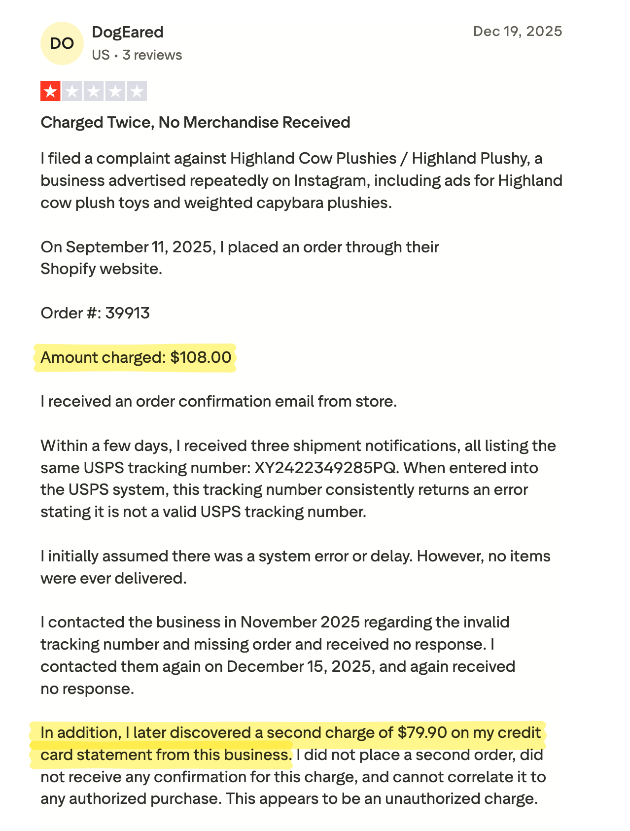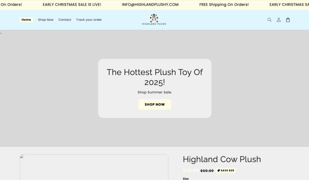 In between these two sites, I believe this crew also ran highlandcowplushy.com, I’ve seen a few reviewers mention this domain. Here’s the order of their sites that I’ve caught so far:
