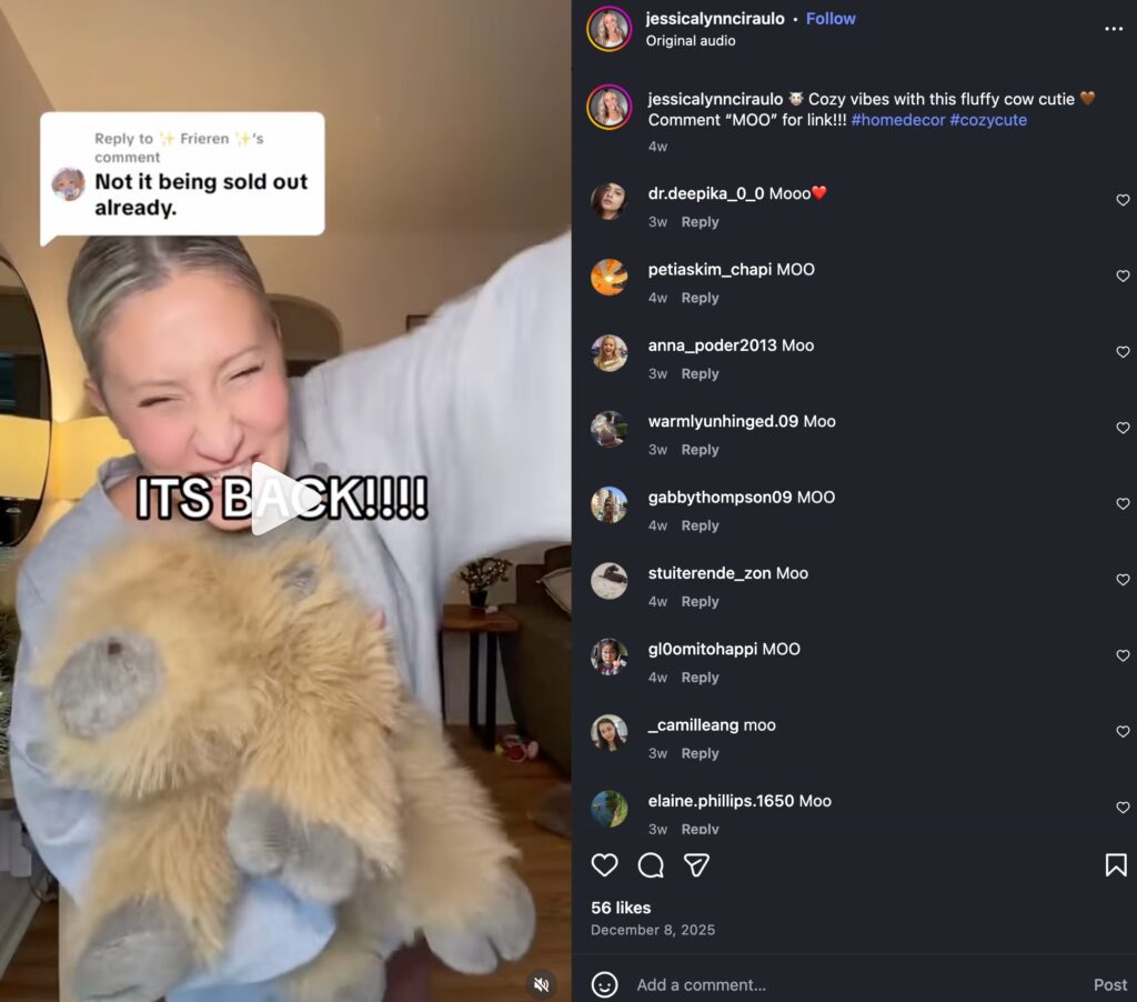 There’s a whole batch of this stuff on Instagram and Tik Tok. Every time I went looking, I found new creators running very similar ads for the highland cow. There are a ton of folks doing this.