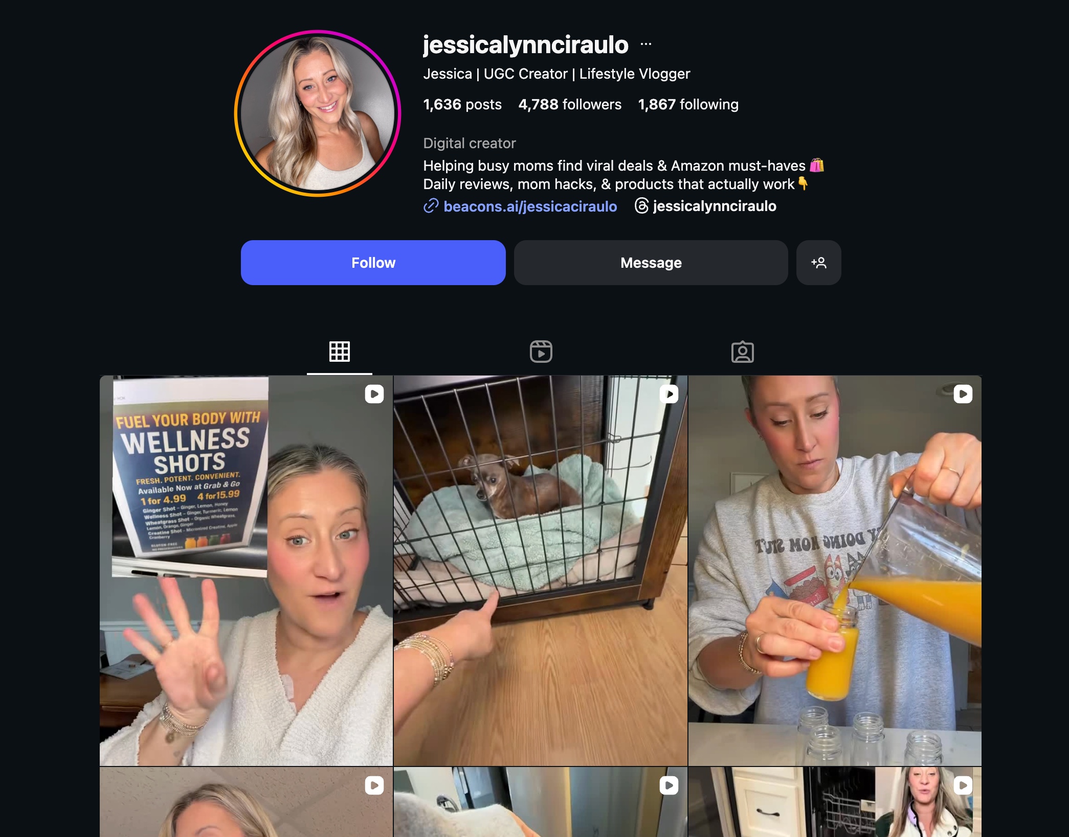 Jessica Ciraulo is a influencer/creator. Basically she posts a ton of videos on all sorts of products.