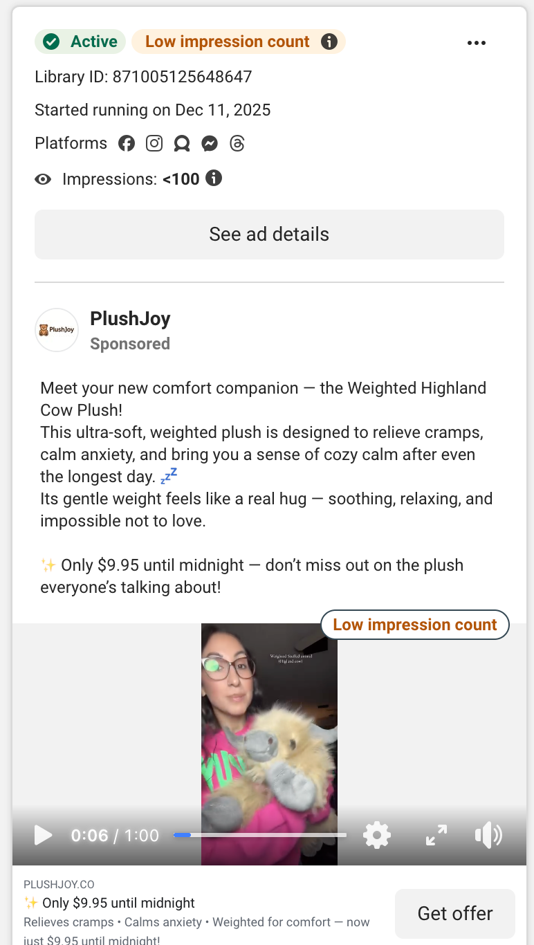 Go to the Facebook Ad Library, search for Highland Cow, and you’ll come across tons of different websites all running the same scam.